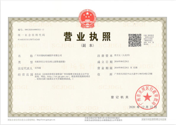 Trung Quốc Guangzhou Menzeh Machinery Parts Co., Ltd. Chứng chỉ